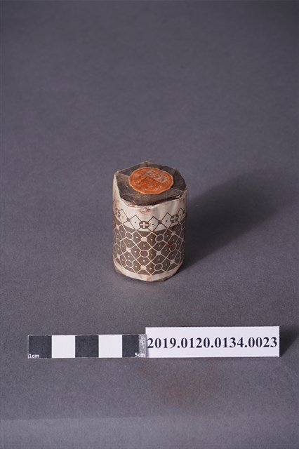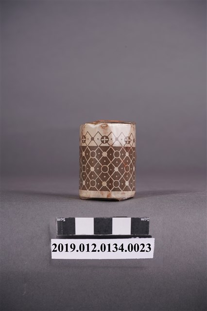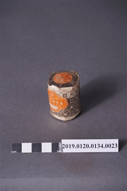 本文物是日治時期家庭使用染料罐,色號52號橘色,屬於酸性みやこ染,みやこ染指得是可以在家庭使用的染料,該色號染料可用於絲製品、毛、平織毛織品及尼龍。本文物外觀包裝大致完整,包裝有兩處商標,商標字跡模糊,罐子上頭商標為「ォレンジ,酸性絹、毛染用,NO.52」。罐身商內容由左至右為「家庭染料,酸性みやこ染,ナィロン、絹、毛用,ォレンジ」。