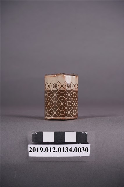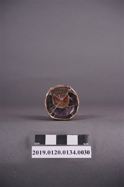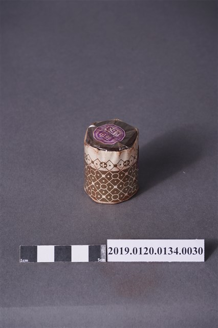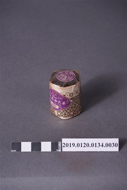 本文物是日治時期家庭使用染料罐,色號53號藤色,屬於酸性みやこ染,みやこ染指得是可以在家庭使用的染料,該色號染料可用於絲製品、毛、平織毛織品及尼龍。本文物外觀包裝大致完整,包裝有兩處商標,罐子上頭商標為「藤色,酸性絹毛染用,NO.53」。罐身商標內容由左至右為「家庭染料,酸性みやこ染,ナィロン、絹、毛用,藤色」。