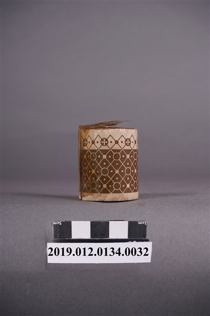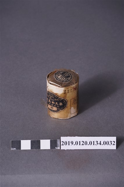 本文物是日治時期家庭使用染料罐,色號70號藍黑色,屬於酸性みやこ染,みやこ染指得是可以在家庭使用的染料,該色號染料可用於絲製品、毛、平織毛織品及尼龍。本文物外觀包裝大致完整,包裝有兩處商標,罐子上頭商標「紺色,酸性絹毛染用,NO.70」。罐身商標部分毀損,內容由左至右為「家庭染料,性みやこ染,絹、毛專用,紺色」。