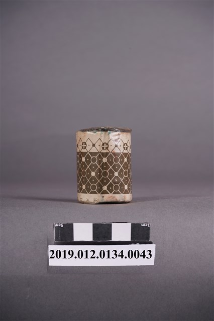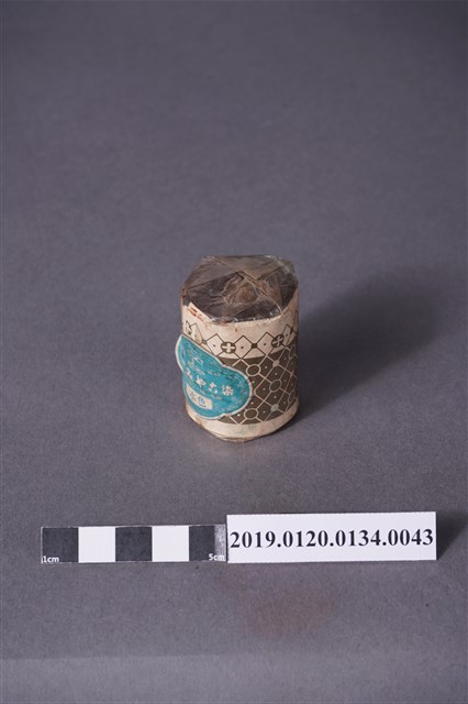 本文物是日治時期家庭使用染料罐,色號61號藍綠色,屬於酸性みやこ染,みやこ染指得是可以在家庭使用的染料,該色號染料可用於絲製品、毛、平織毛織品及尼龍。本文物外觀包裝大致完整,包裝有兩處商標,罐子上頭商標遺失。罐身商標內容由左至右為「家庭染料,酸性みやこ染,ナィロン、絹、毛用,水色」。