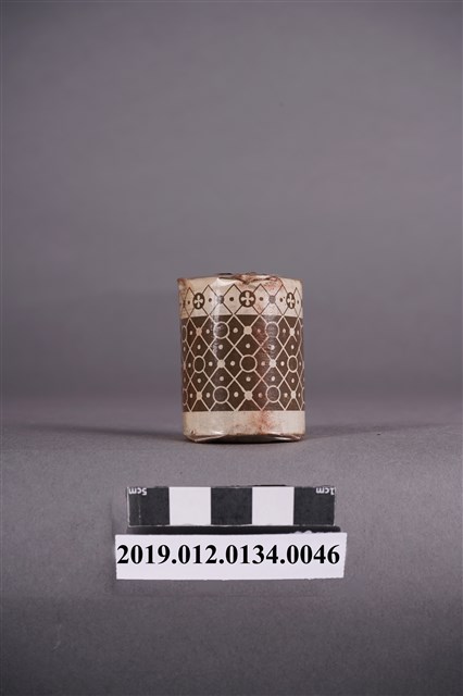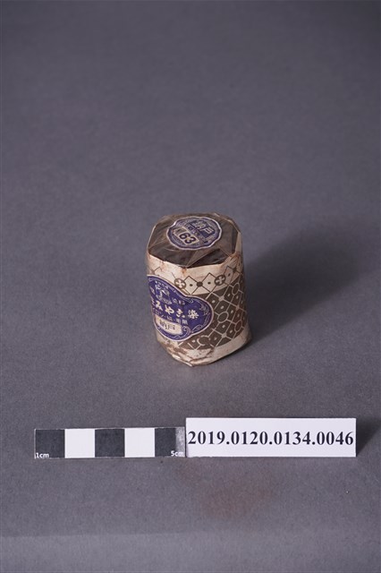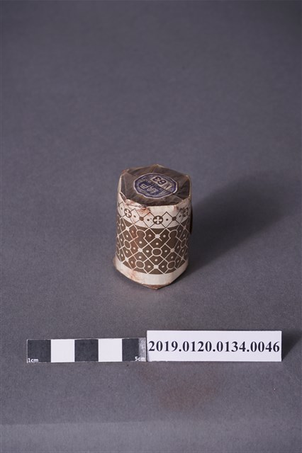 本文物是日治時期家庭使用染料罐,色號63號灰藍色,屬於酸性みやこ染,みやこ染指得是可以在家庭使用的染料,該色號染料可用於絲製品、毛、平織毛織品及尼龍。本文物外觀包裝大致完整,包裝有兩處商標,罐子上頭商標為「納戶,酸性絹毛染用,NO.63」。罐身商標內容由左至右為「家庭染料,酸性みやこ染,ナィロン、絹、毛用,納戶」。