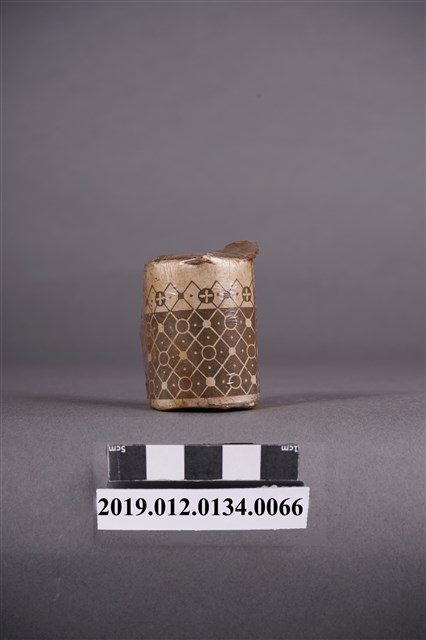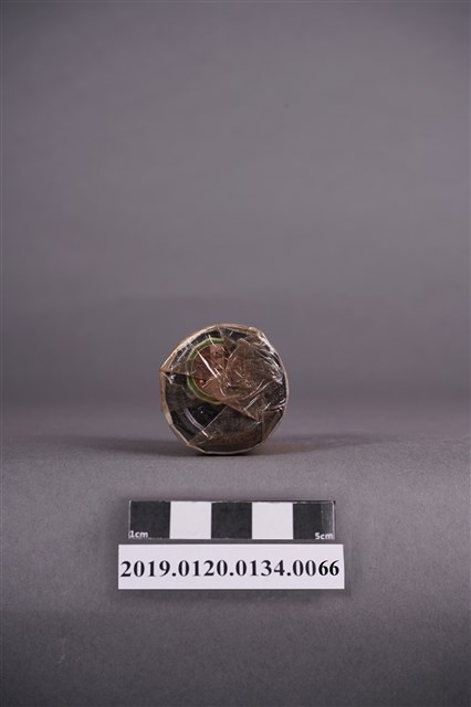 本文物為日治時期的染料,為罐裝物品。染料罐外圍以印有黑色紋路的紙張包住,再以塑膠材質包裝。瓶身的包裝紙泛黃嚴重,瓶蓋處的塑膠包裝顏色偏深。