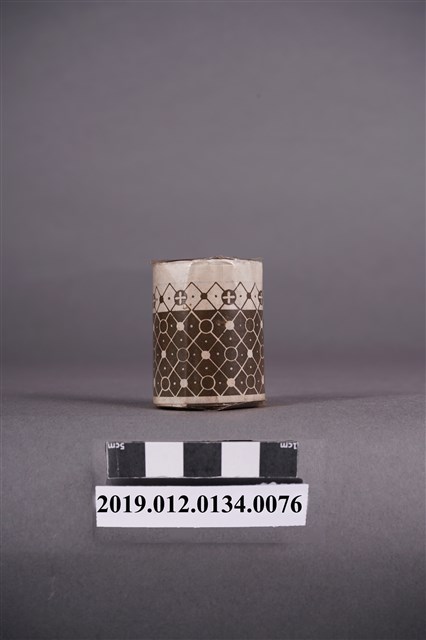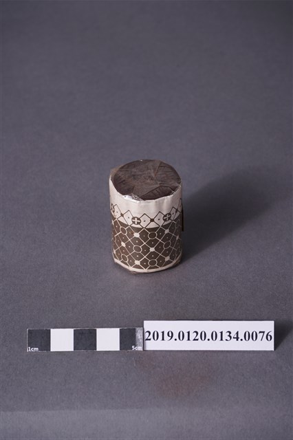 本文物為日治時期的染料,為罐裝物品。染料罐外圍以印有黑色花紋的紙張包住,罐子正面貼有「酸性みや古染」、「絹、毛、ナイロン用」、「鼠」及「家庭染料」等字,文物的登陸商標為燈塔圖案。