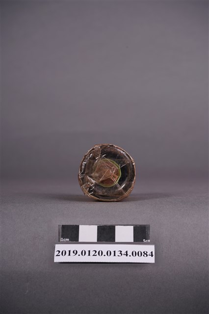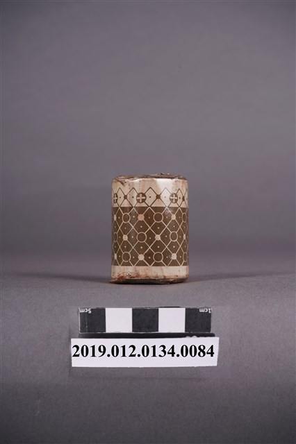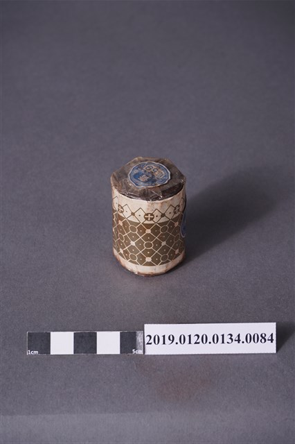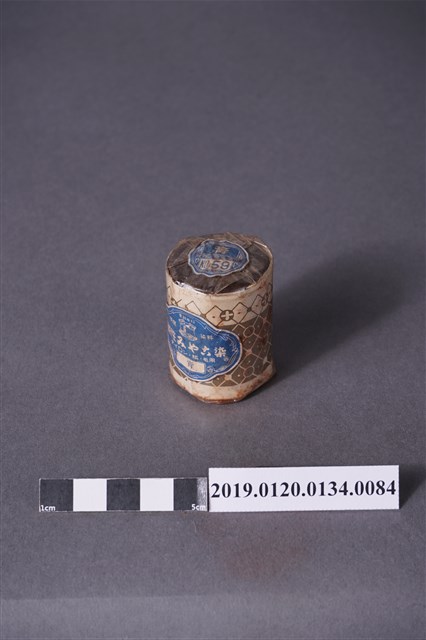 本文物為日治時期的染料,為罐裝物品。染料罐外圍以印有黑色花紋的紙張包住,罐子正面貼著印有「酸性みや古染」、「ナイロン、毛、絹用」、「青」及「家庭染料」等字的紙,並印有一燈塔樣。瓶蓋處的紙張印有「酸性、絹毛染用」及「NO.59」等字。