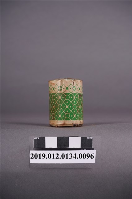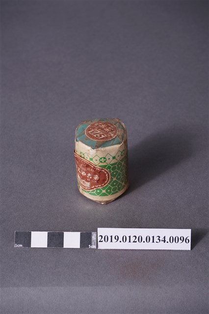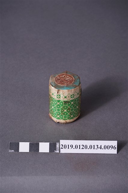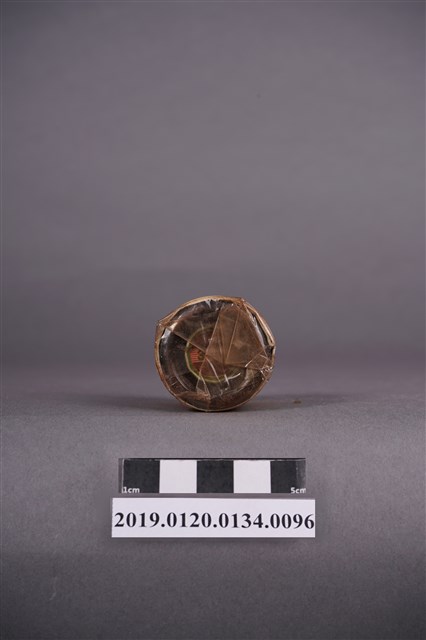 本文物為日治時期的染料,為裝有褐色的染料罐。染料罐外圍以印有綠色花紋的紙張包住,罐子正面貼有紅色紙張,並印有「直接みや古染」、「木綿、麻、絹、人絹染用」、「赤茶」及「家庭染料」等字的紙,並印有一燈塔樣。瓶蓋處的紙張印有「直接……」及「NO.15」等字。