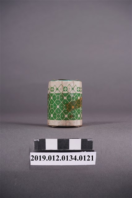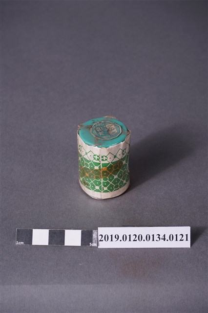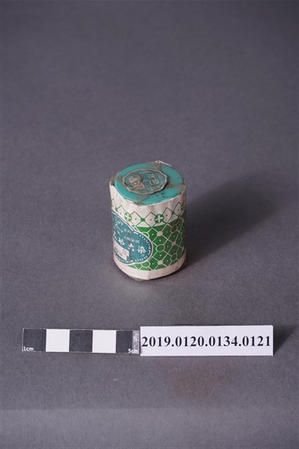 本文物為染料罐(水色),外觀花紋為綠色,可用於木棉、麻、絹、人工絹等,,罐頂有編號NO.61,顏色下方寫有號碼4009。染料顏色為水色,為藍綠色,偏青色。罐外寫有家庭用染料,染料性質為直接染料,直接染料所指的是能直接溶於水,無需使用其他添加物。