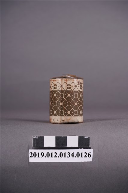 本文物為染料罐(水色),外觀花紋為黑色,可用於尼龍、絹、毛等。染料顏色為水色,為藍綠色,偏青色。罐外寫有家庭用染料,染料性質為酸性染料,酸性染料是含有酸性基團的水溶性染料,色澤鮮艷,對纖維素無著色效果。