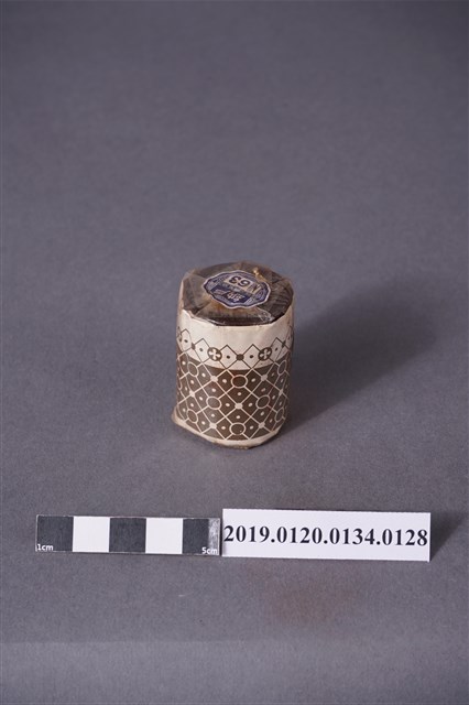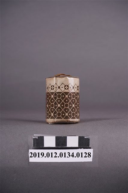 本文物為染料罐(納戶色),外觀花紋為黑色,可用於尼龍、絹、毛等,罐頂有編號NO.63。染料顏色為納戶色,納戶色是帶有點綠色的深藍色。罐外寫有家庭用染料,染料性質為酸性染料,酸性染料是含有酸性基團的水溶性染料,色澤鮮艷,對纖維素無著色效果。