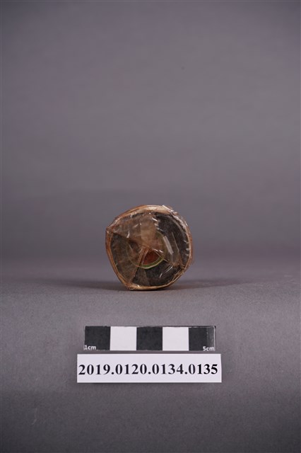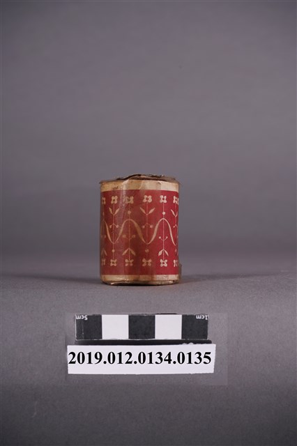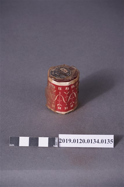 本文物為染料罐(紺色),外觀花紋為紅色,可用於毛線、毛織等。染料顏色為紺色,紺色為帶有藍色的深藍色,接近海軍藍、普魯士藍,サージ為羊毛、木棉、尼龍所製成的洋服,最典型的服裝為學生服。罐外寫有家庭用染料及特撰染料。