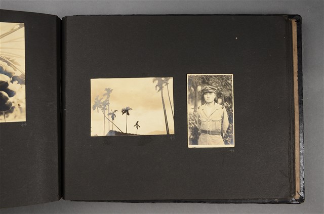 此為日治時期臺灣守備紀念冊內之相片,為一張自然風景照,相片內有數棵檳榔樹高聳入雲。