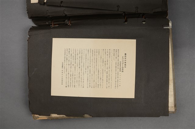 本文物收錄於昭和6年(1931年)由國風會發行之《世界國風大觀》當中,為上張照片的說明紙,內容大致如下:「該戲劇呈現的是早期俄羅斯歷史當中曾發生過的戰爭」由露國極東大教授 スパルヴヰン所寫,為蘇聯邦大使館所藏,禁止複寫與轉載。
