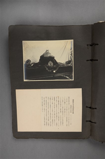 本文物收錄於昭和6年(1931年)由國風會發行之《世界國風大觀》當中。為俄皇彼得一世皇冠之近照,並附帶一張說明紙。照片當中,皇冠呈現圓頂八角形,鑲有寶石。說明紙內容大致如下:「彼得大帝是俄國的中興明君,1682年,年僅11歲的他與昏庸的哥哥(伊凡五世)共同執政,但實權掌握在攝政的姐姐索菲亞身上」由露國極東大教授 スパルヴヰン所寫。