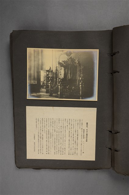 本文物收錄於昭和6年(1931年)由國風會發行之《世界國風大觀》當中。為王宮空間的近照,並附有一張說明紙。照片右方為伊凡四世的王椅,左方櫃子當中則放有相當多的器具。說明紙內容大致如下:「這是蘇聯開放人民自由參觀的場地,外來觀光客欣賞先進武器的同時,對比過去王朝的華麗與豪奢,形成相當有趣的畫面」由露國極東大教授 スパルヴヰン所寫,為蘇聯邦大使館所藏,禁止複寫與轉載。