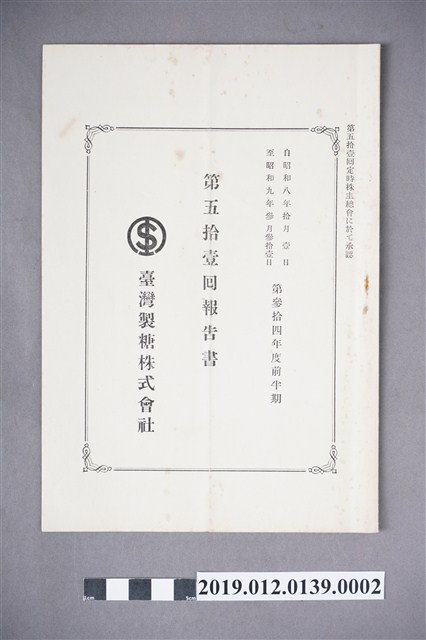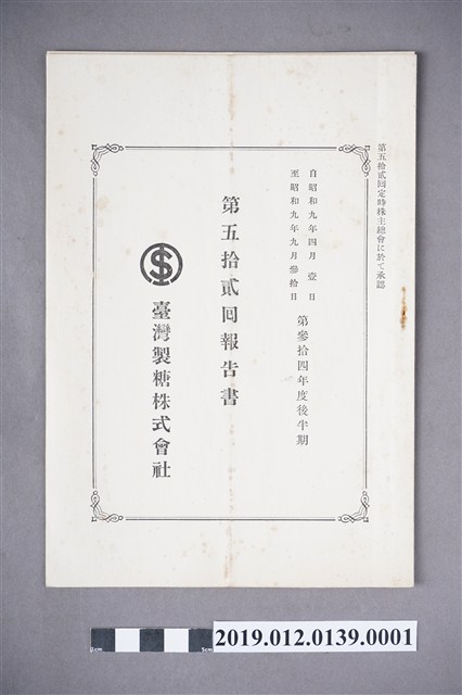 2019.012.0139.0001 臺灣製糖株式會社第52回報告書