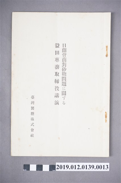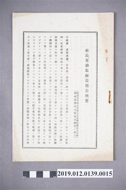 2019.012.0139.0003 臺灣製糖株式會社第47回例行股東會議 總經理、常務董事報告概要
