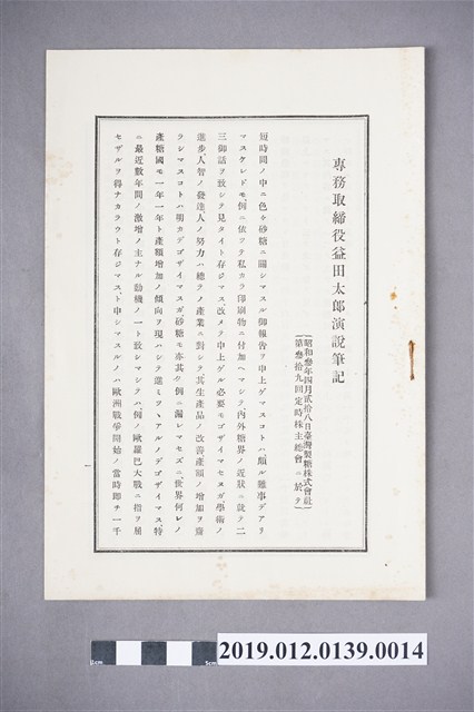 2019.012.0139.0014 臺灣製糖株式會社第39回例行股東會議常務董事益田太郎演說筆記
