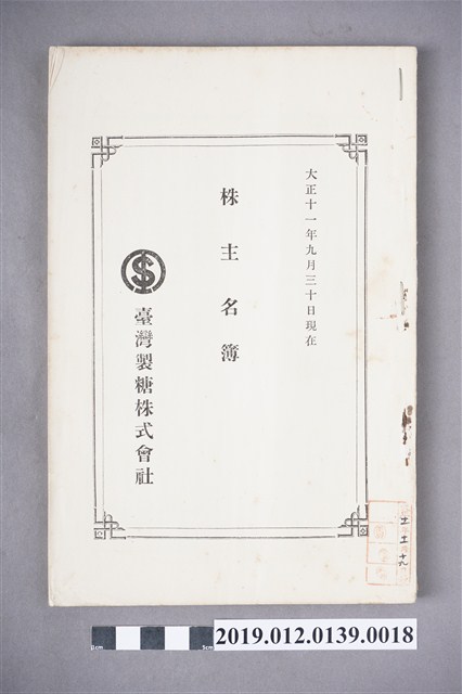 2019.012.0139.0018 1922年9月30日臺灣製糖株式會社股東名冊