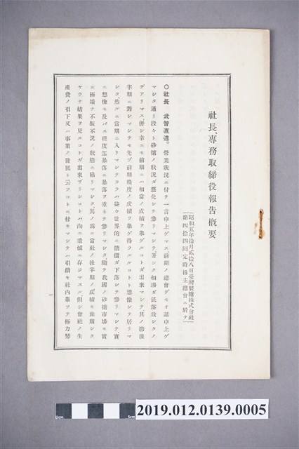 2019.012.0139.0005 臺灣製糖株式會社第44回例行股東會議總經理與常務董事報告概要