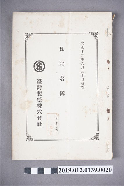 2019.012.0139.0020 1923年9月30日臺灣製糖株式會社股東名冊