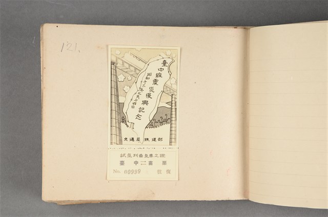 臺中縣震災復興紀念、交通局鐵道部、試乘列車乘車之證