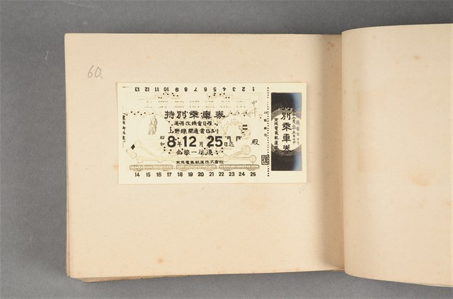 此文物為乘車卷,車票上印著「特別乘車卷 通用改鋏當日限 上野線開通當日 昭和8年12月25日 全線一往復 京成電氣軌道株式會社」。