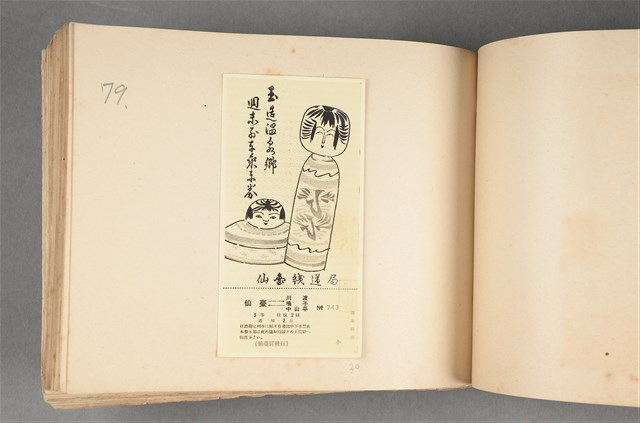 此文物為乘車卷,車票上印著「玉造溫泉鄉 周末????? 仙臺鐵道局」,背景為兩個人偶圖案,車票下半部為車票資訊,形狀為長方形。