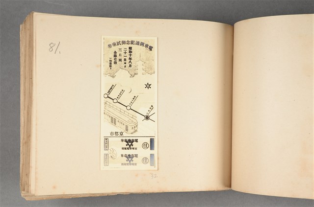 此文物為乘車卷,車票上印著「電車開通紀念御試乘卷 昭和十年八月二十一日??三日間全線有效一往復線 京都市」,車票上有站名及列車的圖案。