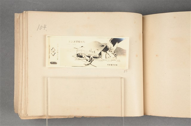 本文物為昭和12年(1937)神戶市電氣局為電車新路線紀念所發行,中央有一鳥獸圖及電車、橋梁之圖案,本文物部分文字已經模糊,較無法辨識。