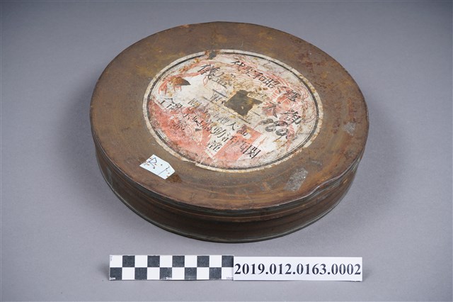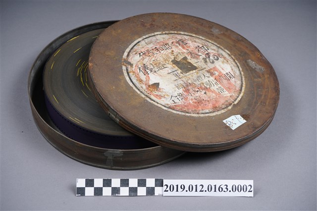 本文物為御大禮之盛儀暗室膠片,全部分為外盒與暗室膠片兩部分。其中,外盒為圓形金屬材質,上面寫有閃耀的昭和盛世,由關西活動寫真業組合進行記錄,內容應為昭和天皇登基御大禮之紀錄。