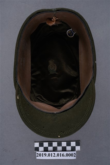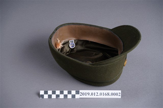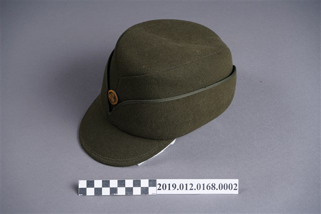 本文物為國民帽,並附有一紙盒裝。盒蓋上寫有「國民帽」三字,而盒身旁則寫有「戰江富國」等字,其中有一包裝紙上貼有「包む品々お國の寶」的紅色標籤。國民帽為軍綠色,帽前緣中央有一金色帶有朵花的圖案,其尺寸為6又3/4。