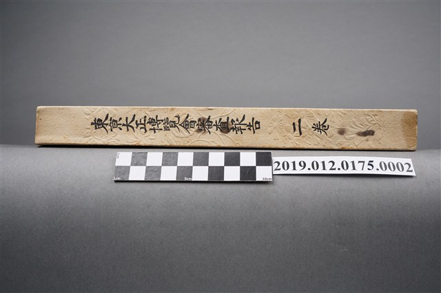 本文物為東京大正博覽會審查報告第二卷,以日文書寫,內為第四部審查報告,由審查部長松波秀實等人,撰寫審查報告的內容。 為慶祝大正天皇登基,大正3年(1914)3月20日至7月31日,於東京上野舉辦大正博覽會,會場面積達168,000坪,入場人數達7463.000人,而其會場當中,更是引進當時國內外最新穎的科技,如日本最早的電扶梯。在此博覽會中,也設有滿州館、朝鮮館、臺灣館,展示當地物產文化等,而其中臺灣喫茶店更是引發熱潮。
