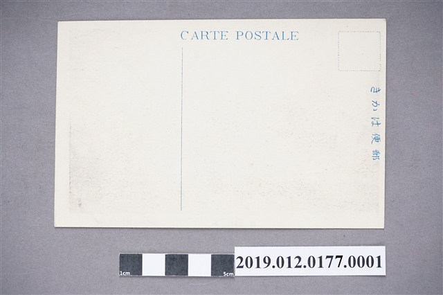 本文物為一日治時期黑白印製的明信片。其內容為大正博覽會第一會場工業別館外觀,在正面右上角處,蓋有一章,寫有「東京大正博覽會紀念」、「大正三年自」、「三月至七月」等字樣;在其背面,右側則印有「郵便はかき」、上方則印著「CARTE POSTALE」等字樣。 為慶祝大正天皇登基,大正3年(1914)3月20日至7月31日,於東京上野舉辦大正博覽會,會場面積達168,000坪,入場人數達7463.000人,而其會場當中,更是引進當時國內外最新穎的科技,如日本最早的電扶梯。在此博覽會中,也設有滿州館、朝鮮館