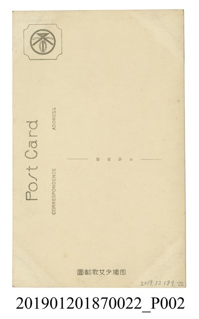本文物為寶塚劇團久美京子照片,照片中久京美子趴在手上看向遠方。久美京子(1912年11月13日-1980年2月12日),為寶塚歌劇團花組的女角,本名萩原貞子,寶塚歌劇團20期生。