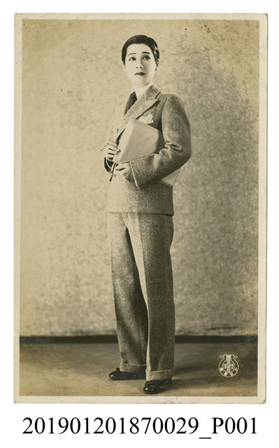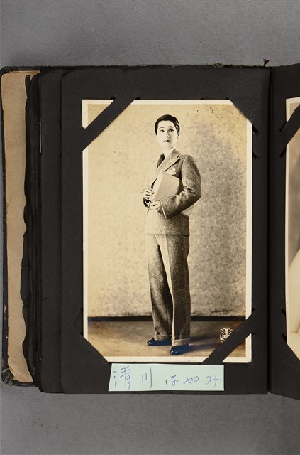 本文物為寶塚劇團清川はやみ照片,其中清川著男裝手拿文件。清川はやみ為寶塚少女歌劇團的男角,寶塚歌劇團25期生,首部出演為「ラ・ロマンス」,1981年退團。