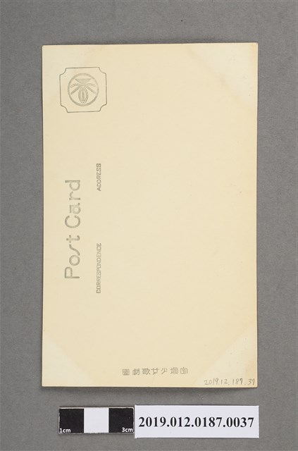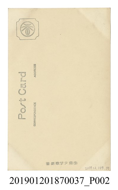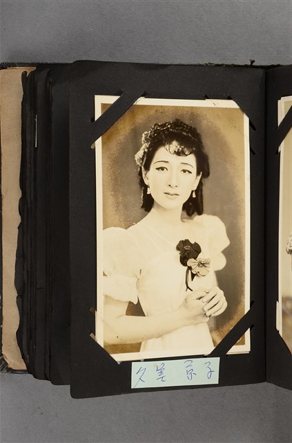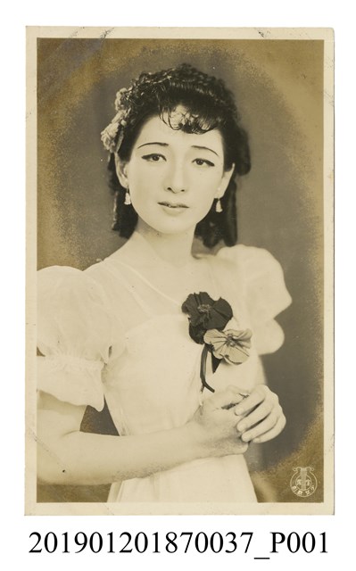 本文物為寶塚劇團久美京子照片,該照片中久美身穿洋裝手持玫瑰花。久美京子(1912年11月13日-1980年2月12日),為寶塚歌劇團花組的女角,本名萩原貞子,寶塚歌劇團20期生。