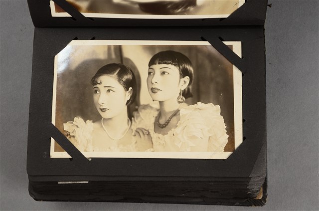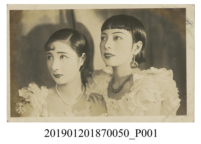 本文物為寶塚劇團洋裝女子劇照,該照片中2位女子皆穿著公主袖洋裝,束髮,脖子戴珍珠項鍊。其中一位戴著一對圓形耳環。此照片僅為半身像。