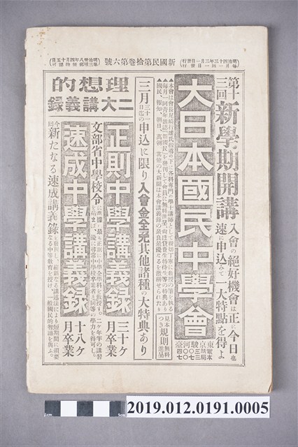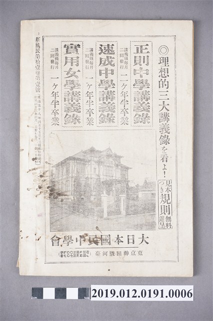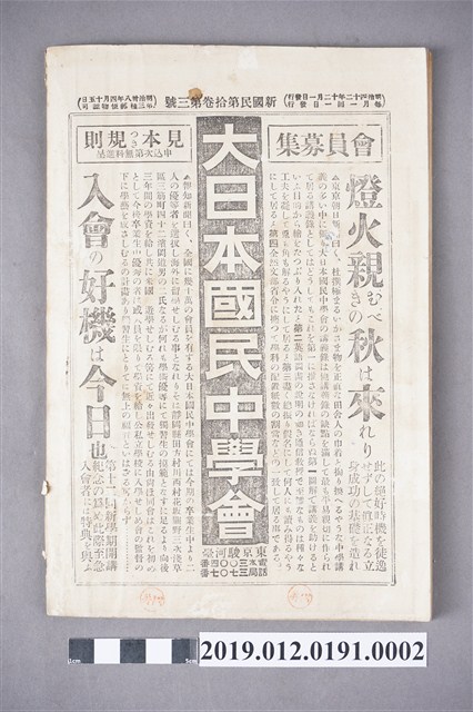 2019.012.0191 大日本國民中學會發行《新國民》雜誌