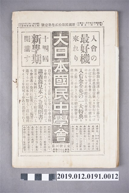 大日本國民中學會發行《新國民》雜誌第12卷第2號