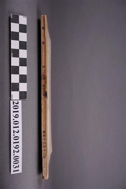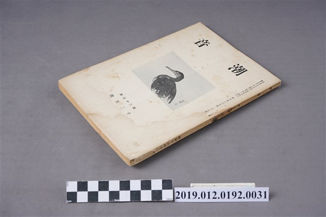 本文物為昭和16年(1941年)12月1日所發行的潮音雜誌第27卷12月號,其封面為一鳥類,全書以日文書寫,內容為短歌、詩歌等,在末頁,則附有相關出版社的活動訊息及相關投稿的規約。潮音雜誌的出版社為潮音社,其編輯兼發行人為太田貞一,其定價為金50錢,而朝鮮、臺灣等外地則為金55錢。 期刊被命名為雜誌,雜誌一詞,其起源有二,有一說為中國古代紀載傳說、故事等的筆記,所產生的古詞語,在1862年倫敦傳教會的麥嘉湖創辦《中外雜誌》,其英文名為Chinese and Foreign Miscellany,即具
