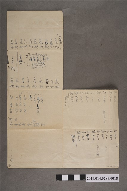 該物件為臺南縣新化初級中學信紙,正面空白,背面記有日期、數字,以及食材數量。
