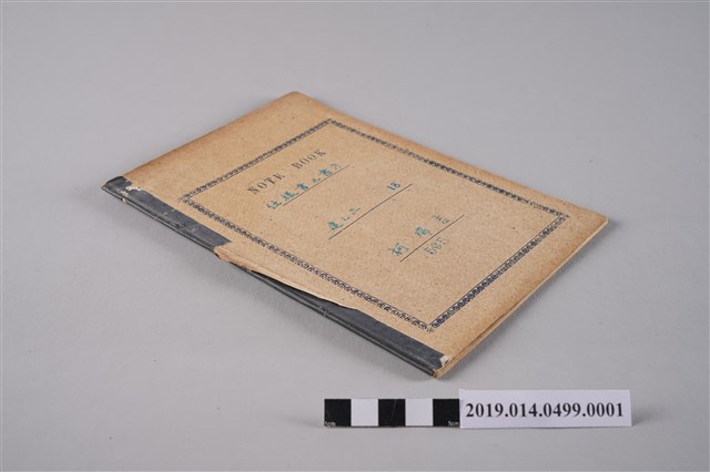 該物件為柯瑞吉就讀臺灣省立臺南工業職業學校時所使用的筆記簿,封面寫著「仕樣書之書方」(仕樣書即工作或工事程序的文件),內文以日文書寫建築工程的細部設計與程序,封底印有「臺南市中正路(銀座通)南教社製」之藍字。內夾紙三張,推測其年代為戰前(早於筆記簿)。