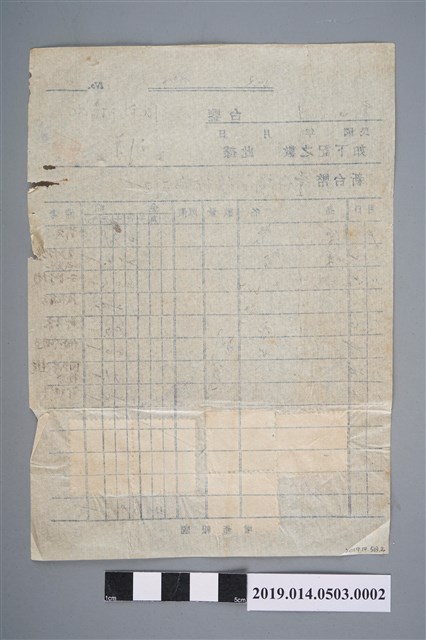 該物件為新化鎮市場內劉等開給新化初中的收據,其上紀錄該校校長與教職員在其店鋪的消費內容、金額和消費原因,並貼有五張面額不等的印花。從中可看出,新化初中教職員的「迎新送舊」情況。