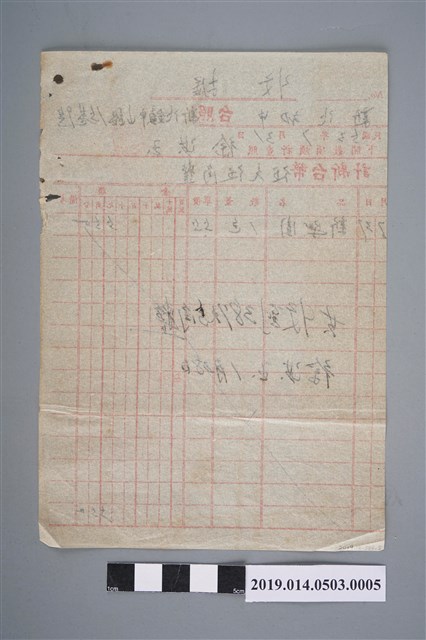 徐洪玉民國53年11月27日予新化初中的收據(火柴、洋燭)