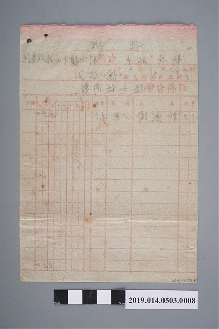 該物件為徐洪玉於1964年(民國53年)9月2日開給新化初中的收據,其上紀錄消費內容(新樂園牌香菸)和金額數量(5.5元1包)。