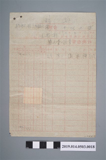 該物件為徐洪玉於1964年(民國53年)9月29日開給新化初中的收據,其上紀錄消費內容(新樂園牌香菸)和金額數量(11元2包),並貼有印花1張。
