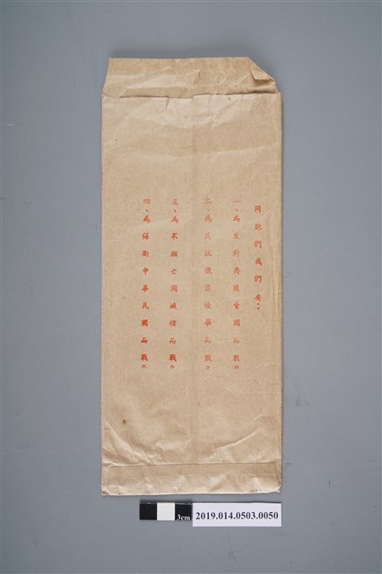 該物件為新化鎮公所公文封,其上寫有「新化初中 公啟」、「本校檬果及龍眼實收支狀況 收入 四七四O元 支出 四六三四元三角 剩餘 一O五六七角」等字樣。