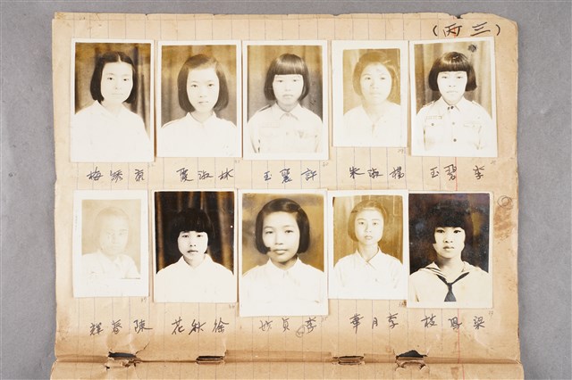 該物件為貼有學生照片的新化初中學生名簿,收錄全校學生(一至三年級,每年級分甲乙兩班)。然部分照片已脫落,且紙張有破損的情形。從已脫落的照片來推測,每張照片背面均寫有學生姓名與學號。此為徐秋花學生照。