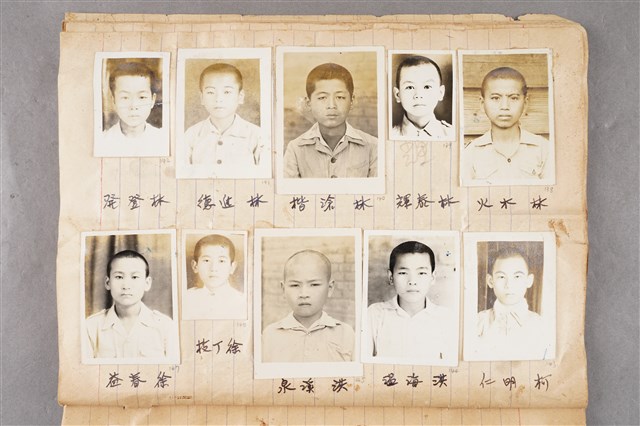 該物件為貼有學生照片的新化初中學生名簿,收錄全校學生(一至三年級,每年級分甲乙兩班)。然部分照片已脫落,且紙張有破損的情形。從已脫落的照片來推測,每張照片背面均寫有學生姓名與學號。此為洪梅溫學生照。