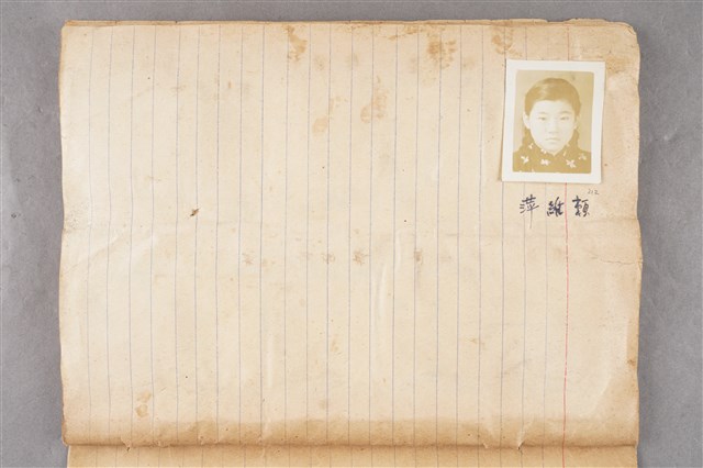 該物件為貼有學生照片的新化初中學生名簿,收錄全校學生(一至三年級,每年級分甲乙兩班)。然部分照片已脫落,且紙張有破損的情形。從已脫落的照片來推測,每張照片背面均寫有學生姓名與學號。此為賴維萍學生照。