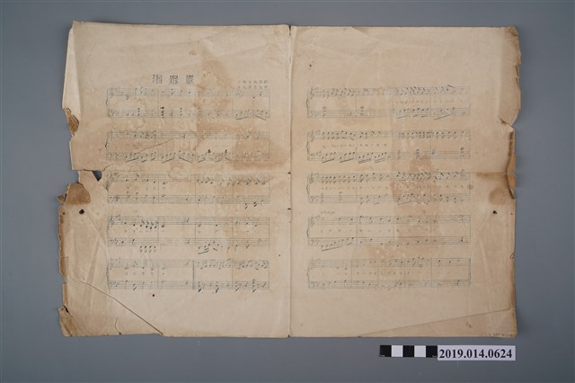 該物件為臺北第三高等女學校學友會印製的歌譜「海邊巖」。該歌曲的作詞者為小野正雄,作詞者為赤尾寅吉。推測該歌譜為捐贈者柯瑞吉之母柯楊罔過去就讀臺北第三高等女學校時所使用的物品。